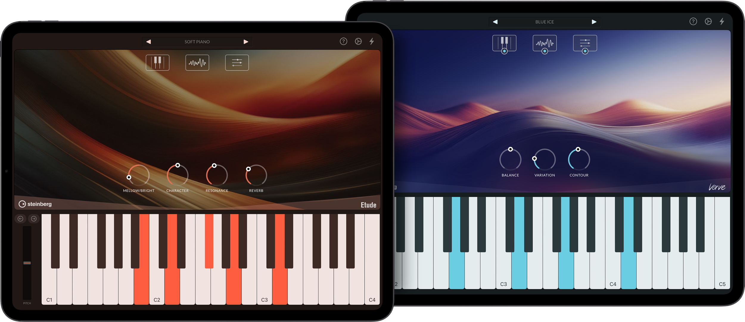 Da beide Instrumente unkompliziert mit jedem externen MIDI-Keyboard oder Audio-Interface verbunden werden können, lassen sie sich für Aufnahmen oder Performances überallhin mitnehmen – gleich ob in die eigenen vier Wände, auf die Bühne oder unterwegs. Nutzer von Cubasis in Kombination mit Verve oder Etude können ohne zusätzliche Kosten auf eine weitere Cubasis-Plug-in-Version des Instruments zugreifen, die in der Praxis für eine optimierte Integration und maximale Performance sorgt.
